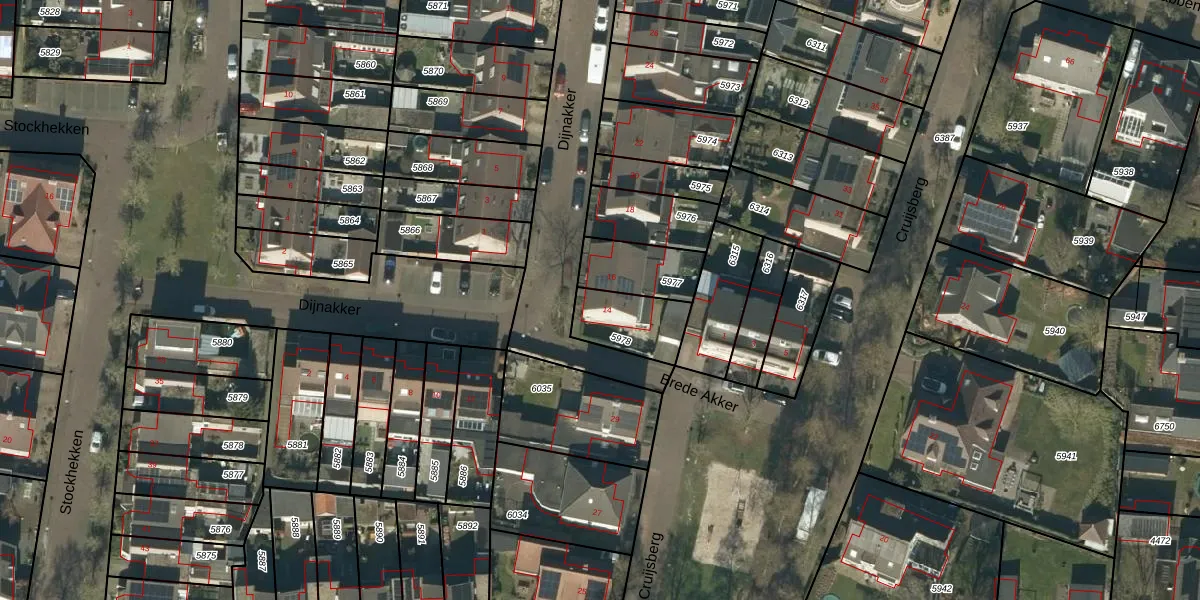 Gebruik de zoekbalk of klik op een perceel voor informatie over de adressen binnen dit perceel.