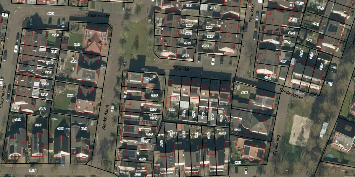 Het perceel waarop Dijnakker 2 staat heeft een oppervlakte van 240 m². Dit is een middelgroot perceel. De perceeloppervlakte wordt geregistreerd door het Kadaster. Gedetailleerde informatie over de maten van dit perceel kunt u vinden in het rapport Kadastrale kaart met maatvoering van Dijnakker 2.