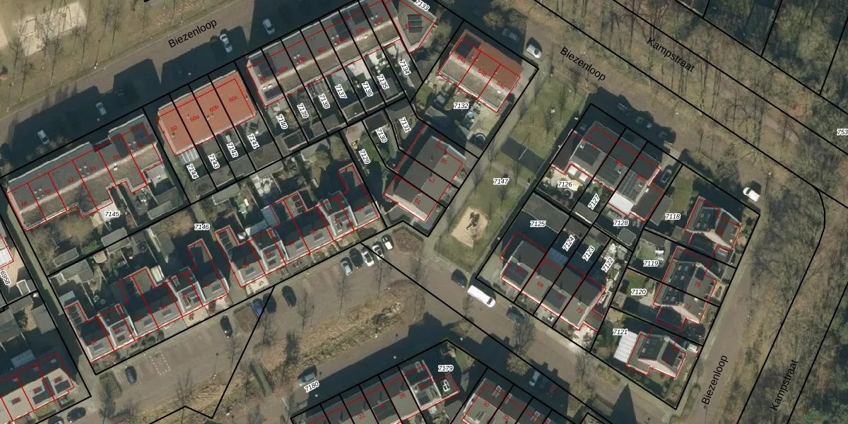 Het perceel waarop het adres ligt is HEE02-B-7129. De afkorting 'HEE02' staat voor kadastrale gemeente Heesch. Het perceel is 244 m² groot. Dat is kleiner dan de gemiddelde perceeloppervlakte in Heesch, dat op 2876,75 m² ligt. Het kleinste perceel in de kadastrale gemeente is 0 m² groot. De grootste perceeloppervlakte is 50,1 ha. Er zijn geen andere adressen aanwezig op het perceel. De huidige grenzen van het perceel zijn digitaal in de Basisregistratie Kadaster (BRK) geregistreerd op 10-09-2010.