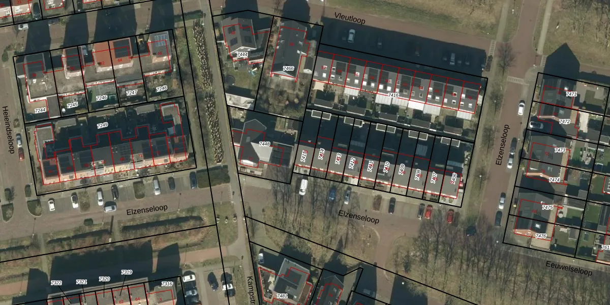 Gebruik de zoekbalk of klik op een perceel voor informatie over de adressen binnen dit perceel.
