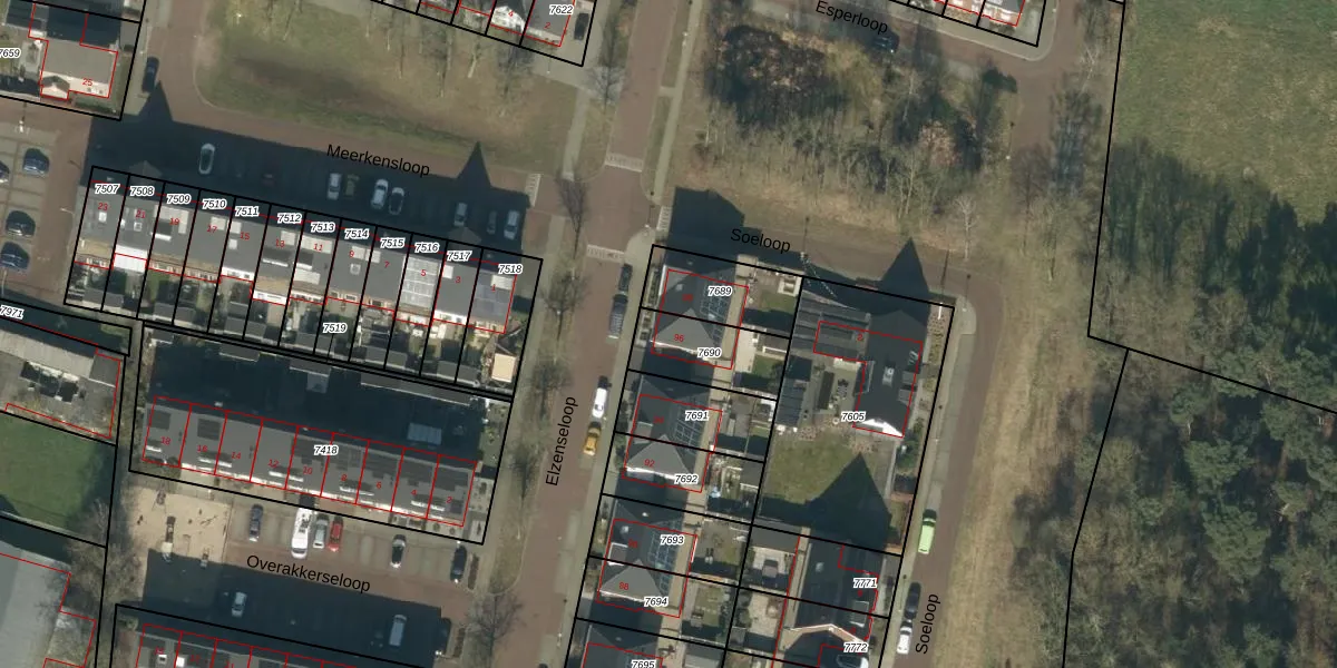 Gebruik de zoekbalk of klik op een perceel voor informatie over de adressen binnen dit perceel.