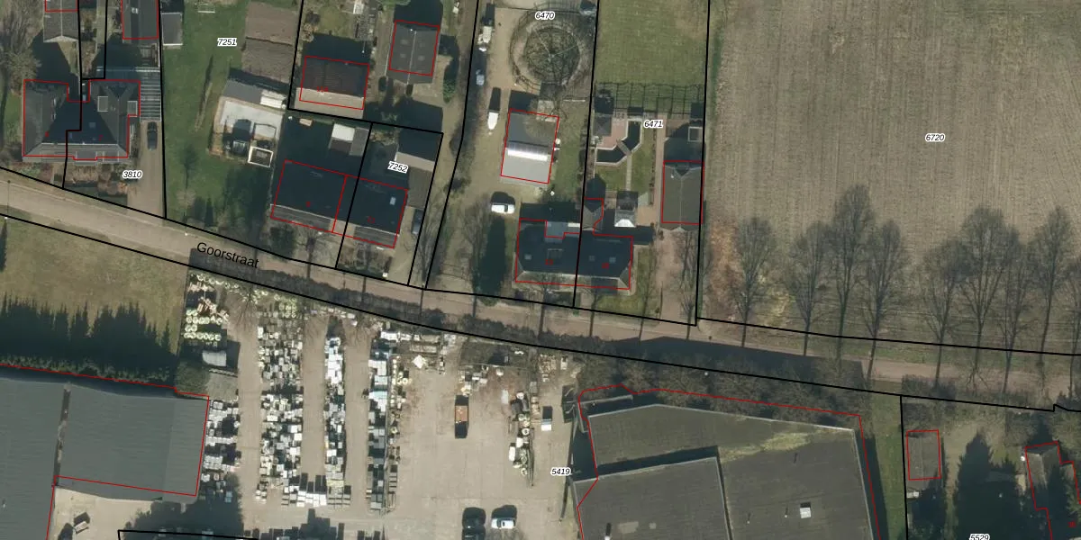 Het perceel waarop Goorstraat 13 staat heeft een oppervlakte van 3090 m². Dit is een zeer groot perceel. De perceeloppervlakte wordt geregistreerd door het Kadaster. Gedetailleerde informatie over de maten van dit perceel kunt u vinden in het rapport Kadastrale kaart met maatvoering van Goorstraat 13.