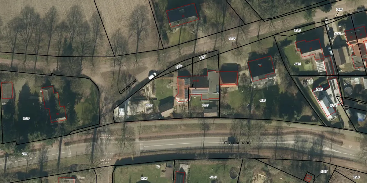 Goorstraat 14 is gelegen op kadastraal perceel HEE02B7835. Deze kadastrale aanduiding is uniek en wordt gebruikt door het Kadaster om eigendomsrechten en andere zakelijke rechten vast te leggen. Het perceel maakt onderdeel uit van de kadastrale gemeente Heesch.