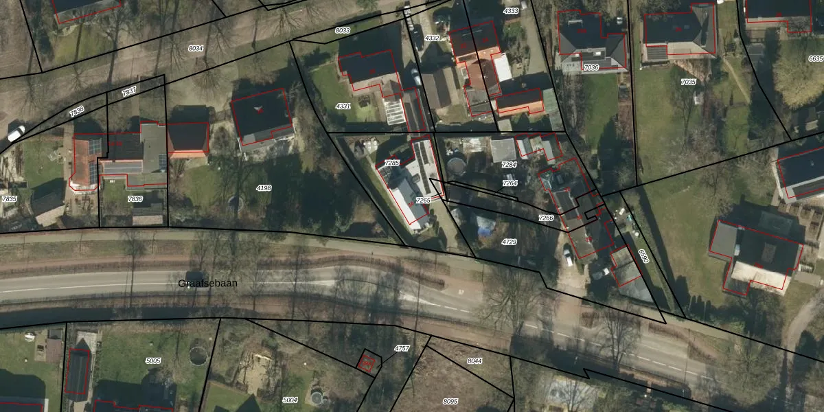 Het perceel waarop Graafsebaan 34 staat heeft een oppervlakte van 555 m². Dit is een groot perceel. De perceeloppervlakte wordt geregistreerd door het Kadaster. Gedetailleerde informatie over de maten van dit perceel kunt u vinden in het rapport Kadastrale kaart met maatvoering van Graafsebaan 34.
