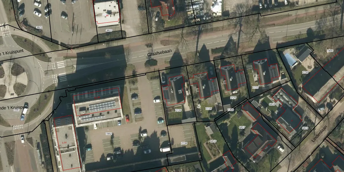 Het perceel waarop Graafsebaan 47 staat heeft een oppervlakte van 565 m². Dit is een groot perceel. De perceeloppervlakte wordt geregistreerd door het Kadaster. Gedetailleerde informatie over de maten van dit perceel kunt u vinden in het rapport Kadastrale kaart met maatvoering van Graafsebaan 47.