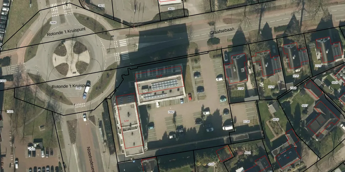 Het perceel waarop Graafsebaan 53 staat heeft een oppervlakte van 3493 m². Dit is een zeer groot perceel. De perceeloppervlakte wordt geregistreerd door het Kadaster. Gedetailleerde informatie over de maten van dit perceel kunt u vinden in het rapport Kadastrale kaart met maatvoering van Graafsebaan 53.