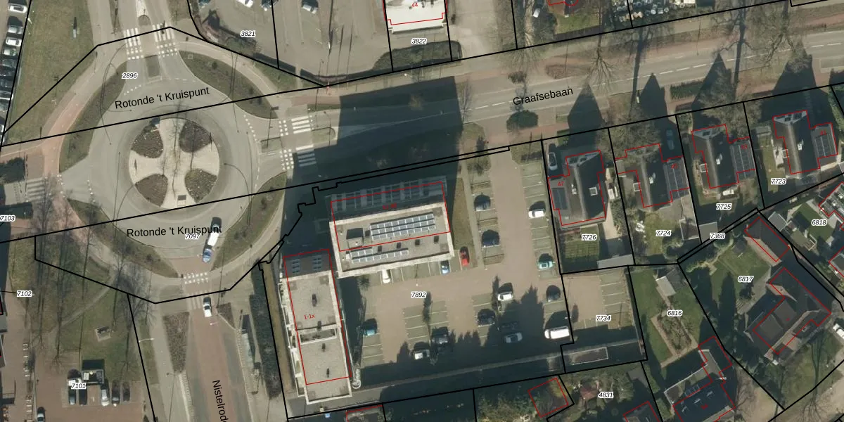 Het perceel waarop Graafsebaan 81 staat heeft een oppervlakte van 3493 m². Dit is een zeer groot perceel. De perceeloppervlakte wordt geregistreerd door het Kadaster. Gedetailleerde informatie over de maten van dit perceel kunt u vinden in het rapport Kadastrale kaart met maatvoering van Graafsebaan 81.