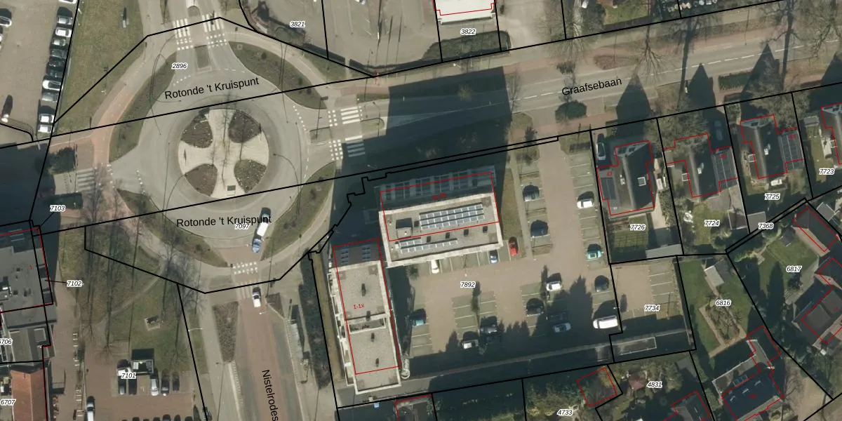 Het perceel waarop Graafsebaan 87 staat heeft een oppervlakte van 3493 m². Dit is een zeer groot perceel. De perceeloppervlakte wordt geregistreerd door het Kadaster. Gedetailleerde informatie over de maten van dit perceel kunt u vinden in het rapport Kadastrale kaart met maatvoering van Graafsebaan 87.