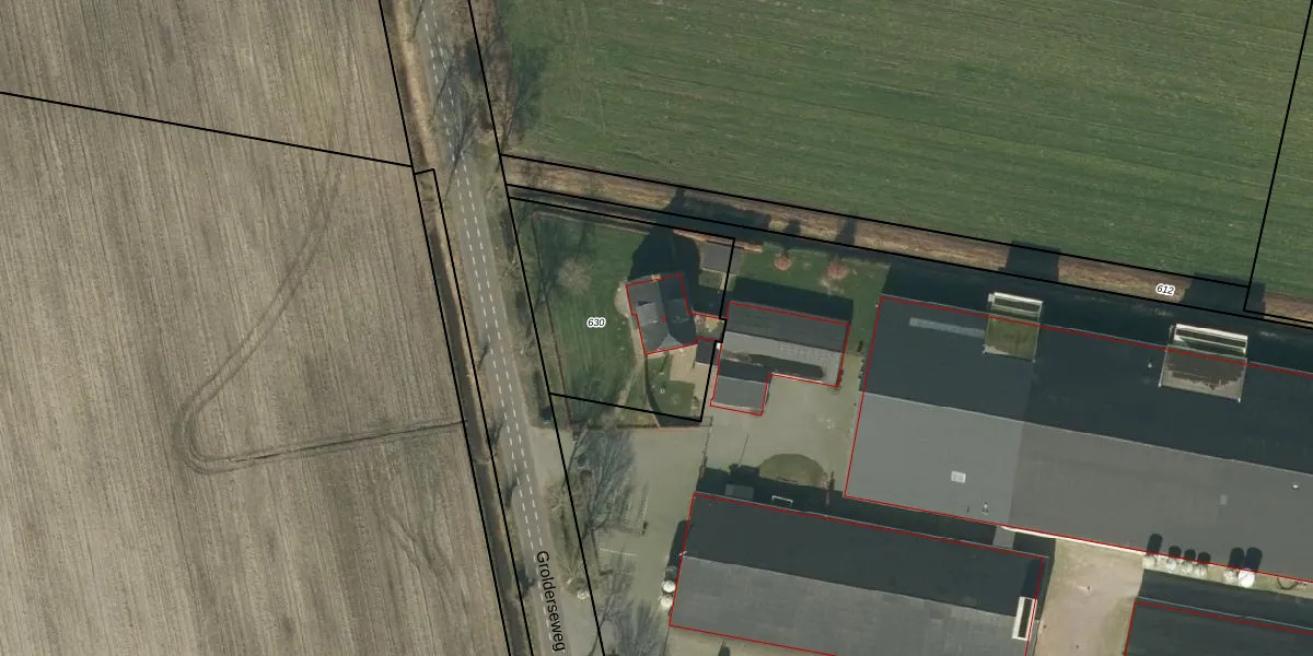 Grolderseweg 9 is gelegen op kadastraal perceel HEE02G630. Deze kadastrale aanduiding is uniek en wordt gebruikt door het Kadaster om eigendomsrechten en andere zakelijke rechten vast te leggen. Het perceel maakt onderdeel uit van de kadastrale gemeente Heesch.