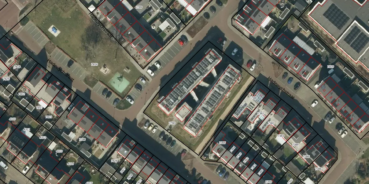 Hadewychstraat 27 is gelegen op kadastraal perceel HEE02B7790. Deze kadastrale aanduiding is uniek en wordt gebruikt door het Kadaster om eigendomsrechten en andere zakelijke rechten vast te leggen. Het perceel maakt onderdeel uit van de kadastrale gemeente Heesch.