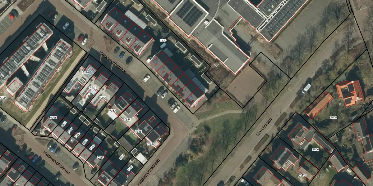 Hadewychstraat 44 is gelegen op kadastraal perceel HEE02B7420. Deze kadastrale aanduiding is uniek en wordt gebruikt door het Kadaster om eigendomsrechten en andere zakelijke rechten vast te leggen. Het perceel maakt onderdeel uit van de kadastrale gemeente Heesch.