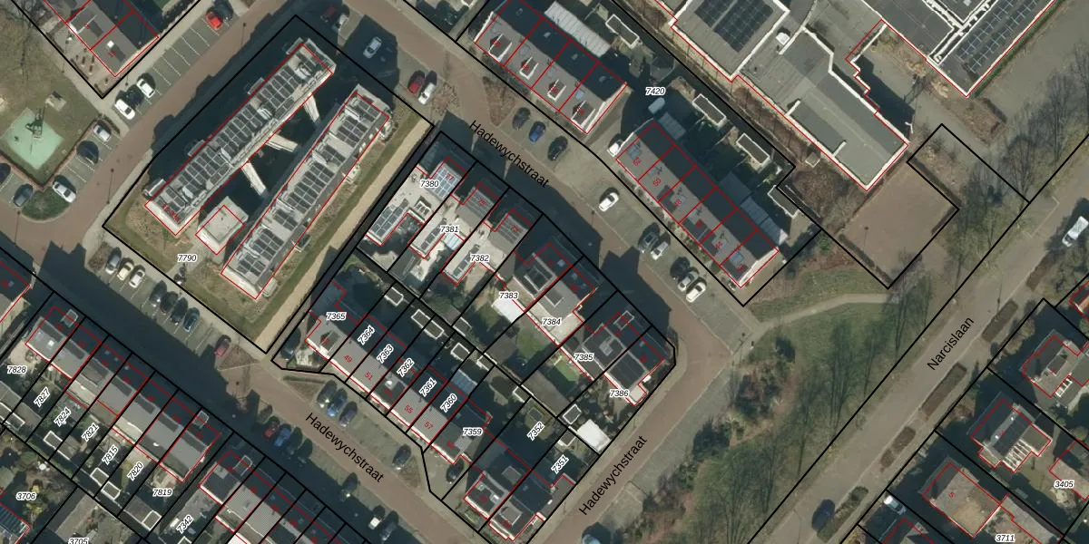 Hadewychstraat 71 is gelegen op kadastraal perceel HEE02B7383. Deze kadastrale aanduiding is uniek en wordt gebruikt door het Kadaster om eigendomsrechten en andere zakelijke rechten vast te leggen. Het perceel maakt onderdeel uit van de kadastrale gemeente Heesch.