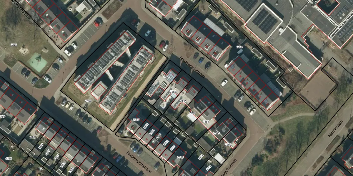 Gebruik de zoekbalk of klik op een perceel voor informatie over de adressen binnen dit perceel.