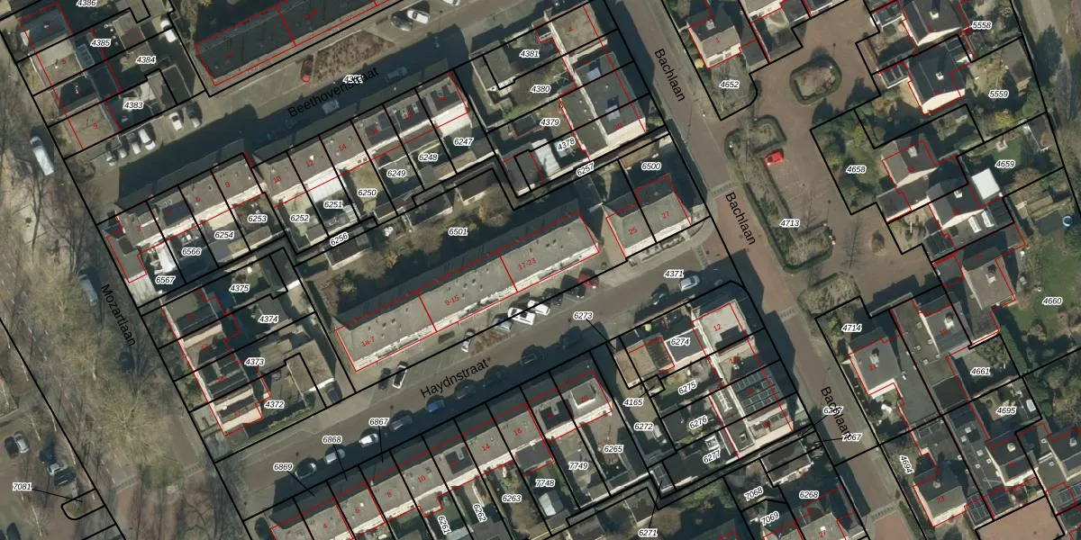 Haydnstraat 19 is gelegen op kadastraal perceel HEE02B6501. Deze kadastrale aanduiding is uniek en wordt gebruikt door het Kadaster om eigendomsrechten en andere zakelijke rechten vast te leggen. Het perceel maakt onderdeel uit van de kadastrale gemeente Heesch.
