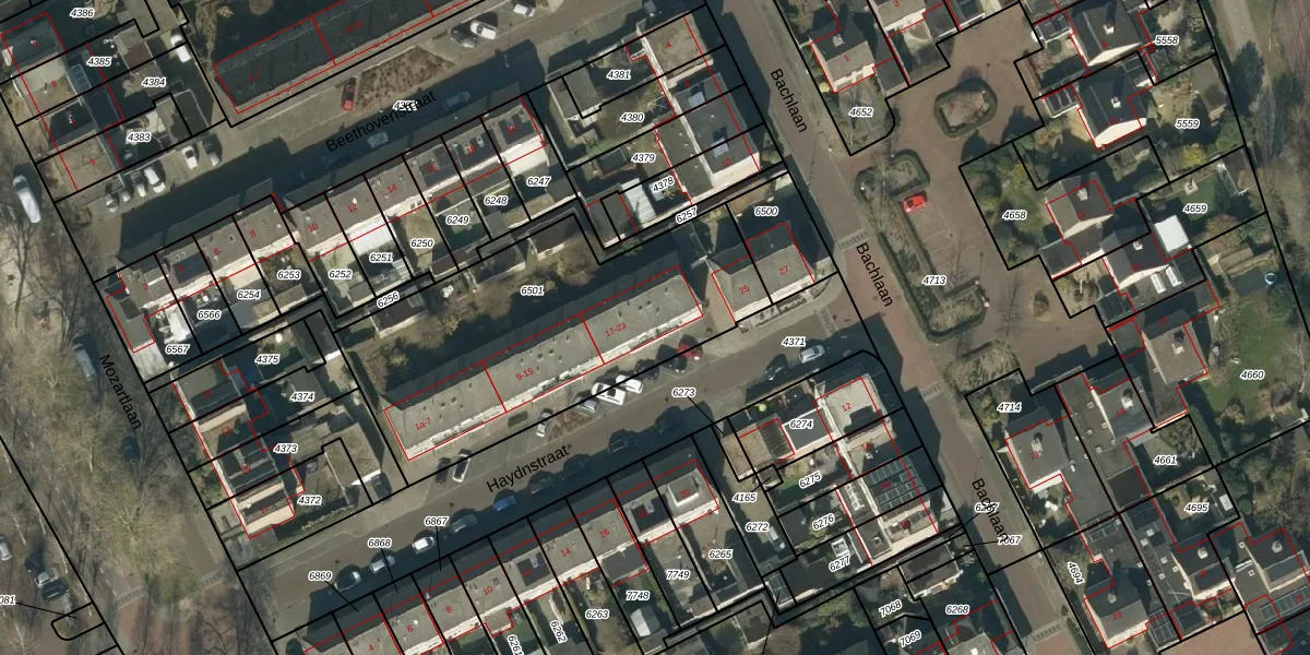 Haydnstraat 21 is gelegen op kadastraal perceel HEE02B6501. Deze kadastrale aanduiding is uniek en wordt gebruikt door het Kadaster om eigendomsrechten en andere zakelijke rechten vast te leggen. Het perceel maakt onderdeel uit van de kadastrale gemeente Heesch.