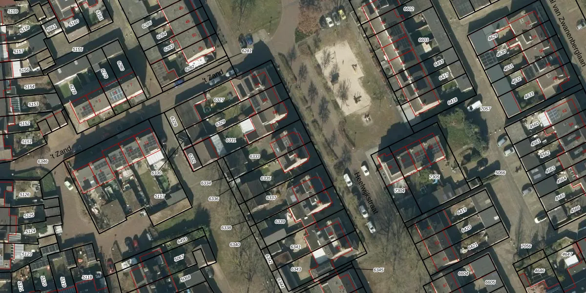 Gebruik de zoekbalk of klik op een perceel voor informatie over de adressen binnen dit perceel.