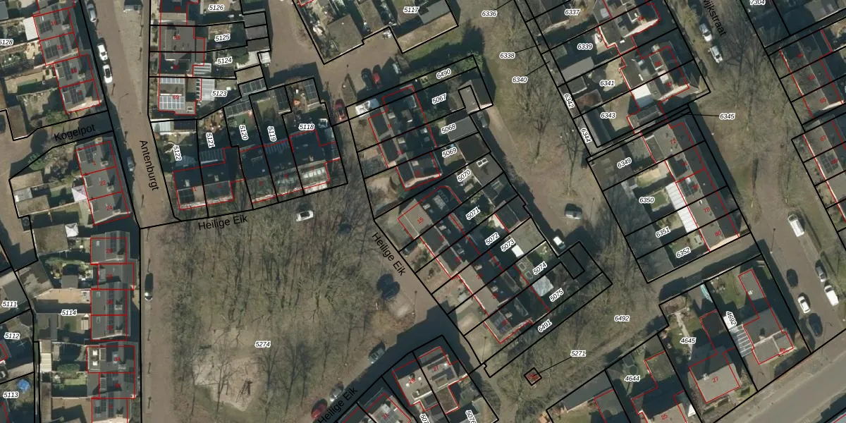 Gebruik de zoekbalk of klik op een perceel voor informatie over de adressen binnen dit perceel.