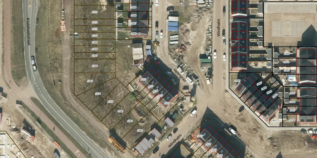 Het perceel waarop Helmgras 7 staat heeft een oppervlakte van 97 m². Dit is een klein perceel. De perceeloppervlakte wordt geregistreerd door het Kadaster. Gedetailleerde informatie over de maten van dit perceel kunt u vinden in het rapport Kadastrale kaart met maatvoering van Helmgras 7.