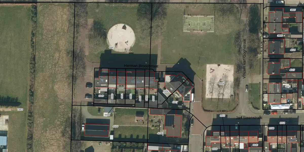 Herman Broodstraat 5 is gelegen op kadastraal perceel HEE02A6955. Deze kadastrale aanduiding is uniek en wordt gebruikt door het Kadaster om eigendomsrechten en andere zakelijke rechten vast te leggen. Het perceel maakt onderdeel uit van de kadastrale gemeente Heesch.
