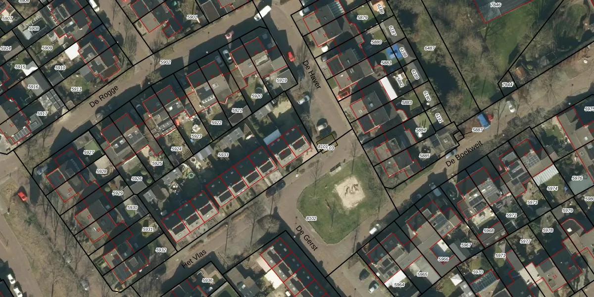 Het perceel waarop Het Vlas 17 staat heeft een oppervlakte van 1402 m². Dit is een zeer groot perceel. De perceeloppervlakte wordt geregistreerd door het Kadaster. Gedetailleerde informatie over de maten van dit perceel kunt u vinden in het rapport Kadastrale kaart met maatvoering van Het Vlas 17.
