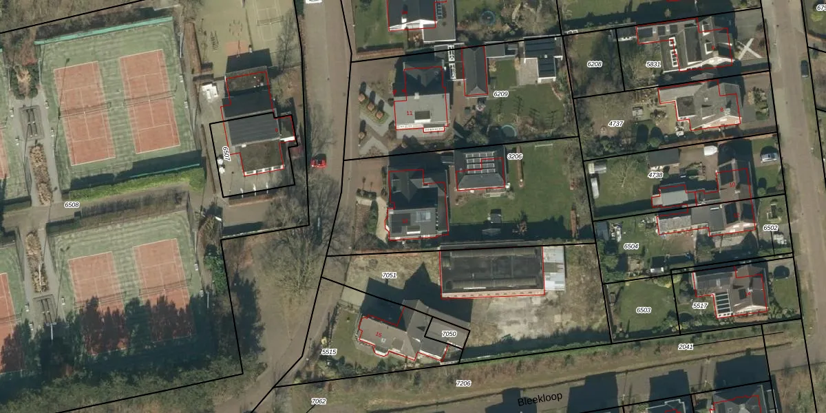 Gebruik de zoekbalk of klik op een perceel voor informatie over de adressen binnen dit perceel.