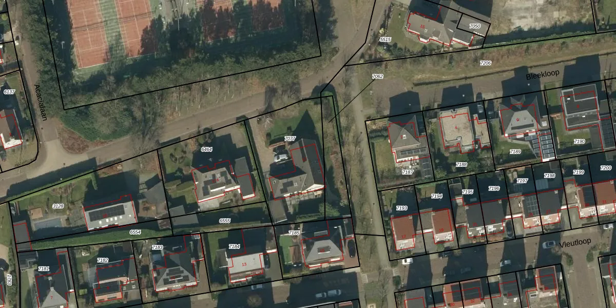 Het perceel waarop het adres ligt is HEE02-B-7077. De afkorting 'HEE02' staat voor kadastrale gemeente Heesch. Het perceel is kleiner dan gemiddeld in Heesch. Het perceel is 828 m² groot, terwijl het gemiddelde ligt op 2877,15 m². De grootste perceeloppervlakte in de kadastrale gemeente is 50,1 ha. De kleinste oppervlakte bedraagt 0 m². Er zijn geen andere adressen aanwezig op het perceel. De huidige grenzen van het perceel zijn digitaal in de Basisregistratie Kadaster (BRK) geregistreerd op 29-11-2010.