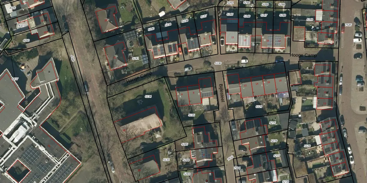 Het perceel waarop Hooge Camp 4 staat heeft een oppervlakte van 638 m². Dit is een groot perceel. De perceeloppervlakte wordt geregistreerd door het Kadaster. Gedetailleerde informatie over de maten van dit perceel kunt u vinden in het rapport Kadastrale kaart met maatvoering van Hooge Camp 4.