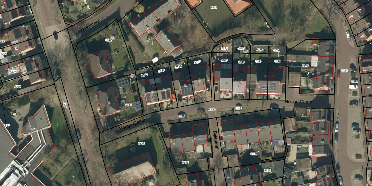 Het perceel waarop Hooge Camp 7 staat heeft een oppervlakte van 239 m². Dit is een middelgroot perceel. De perceeloppervlakte wordt geregistreerd door het Kadaster. Gedetailleerde informatie over de maten van dit perceel kunt u vinden in het rapport Kadastrale kaart met maatvoering van Hooge Camp 7.