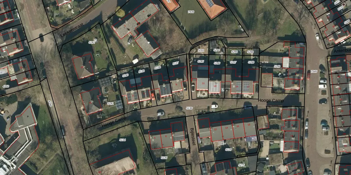 Het perceel waarop Hooge Camp 9 staat heeft een oppervlakte van 277 m². Dit is een middelgroot perceel. De perceeloppervlakte wordt geregistreerd door het Kadaster. Gedetailleerde informatie over de maten van dit perceel kunt u vinden in het rapport Kadastrale kaart met maatvoering van Hooge Camp 9.