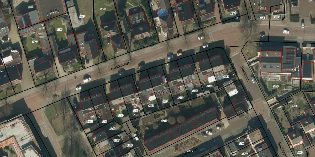 Gebruik de zoekbalk of klik op een perceel voor informatie over de adressen binnen dit perceel.