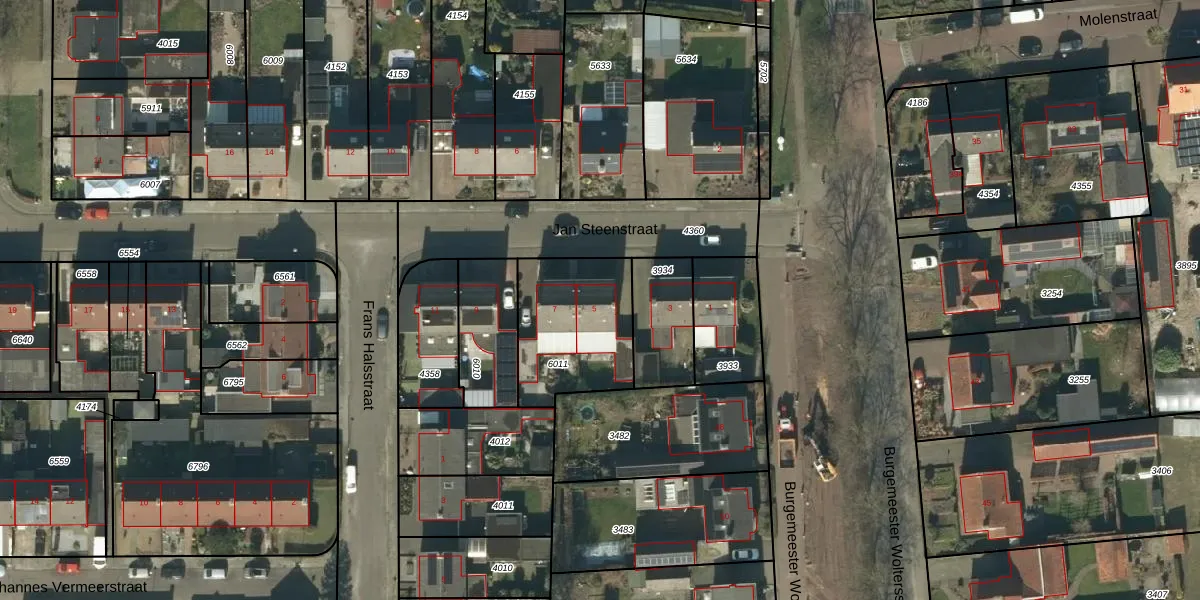 Jan Steenstraat 5 is gelegen op kadastraal perceel HEE02A6011. Deze kadastrale aanduiding is uniek en wordt gebruikt door het Kadaster om eigendomsrechten en andere zakelijke rechten vast te leggen. Het perceel maakt onderdeel uit van de kadastrale gemeente Heesch.