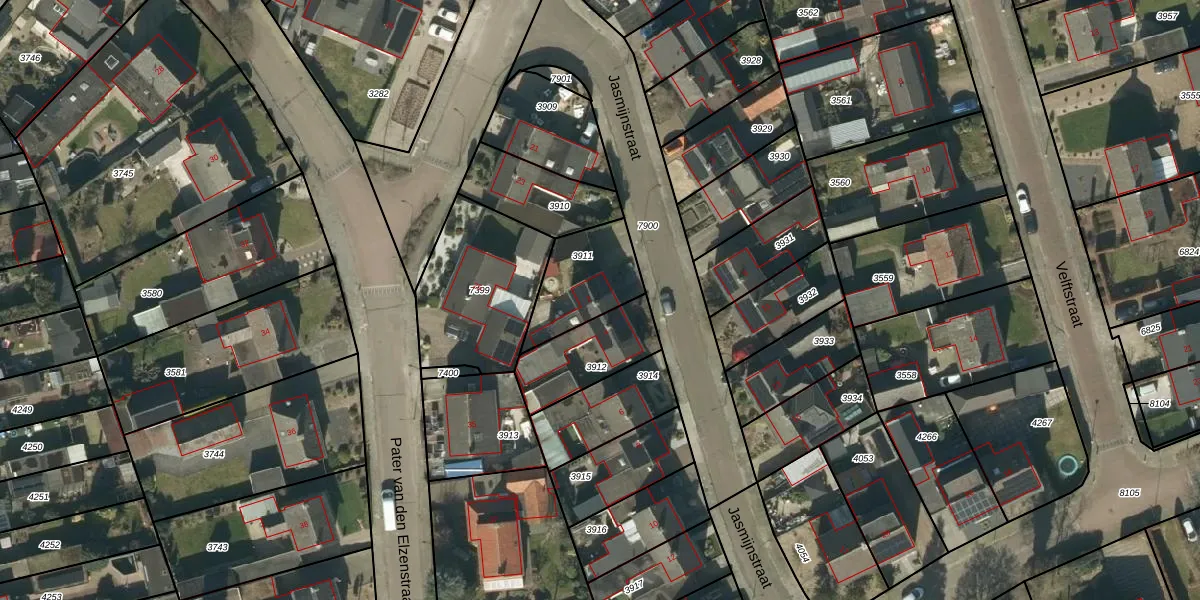Gebruik de zoekbalk of klik op een perceel voor informatie over de adressen binnen dit perceel.