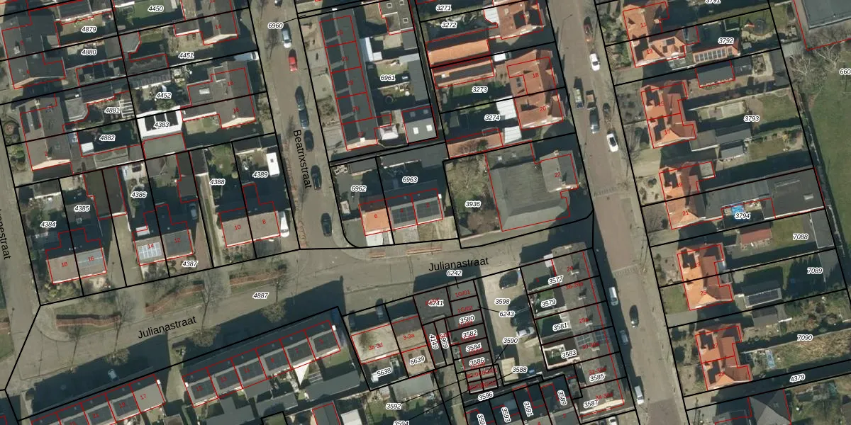 Julianastraat 2 is gelegen op kadastraal perceel HEE02A6963. Deze kadastrale aanduiding is uniek en wordt gebruikt door het Kadaster om eigendomsrechten en andere zakelijke rechten vast te leggen. Het perceel maakt onderdeel uit van de kadastrale gemeente Heesch.