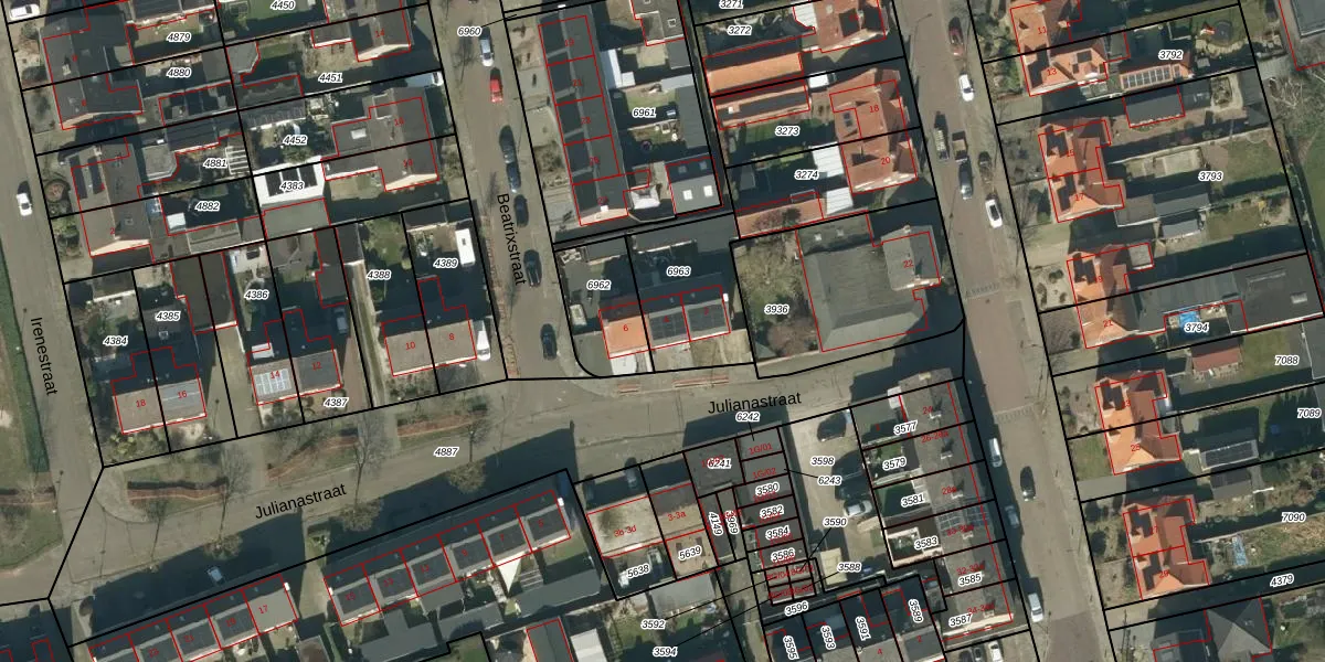 Julianastraat 4 is gelegen op kadastraal perceel HEE02A6963. Deze kadastrale aanduiding is uniek en wordt gebruikt door het Kadaster om eigendomsrechten en andere zakelijke rechten vast te leggen. Het perceel maakt onderdeel uit van de kadastrale gemeente Heesch.