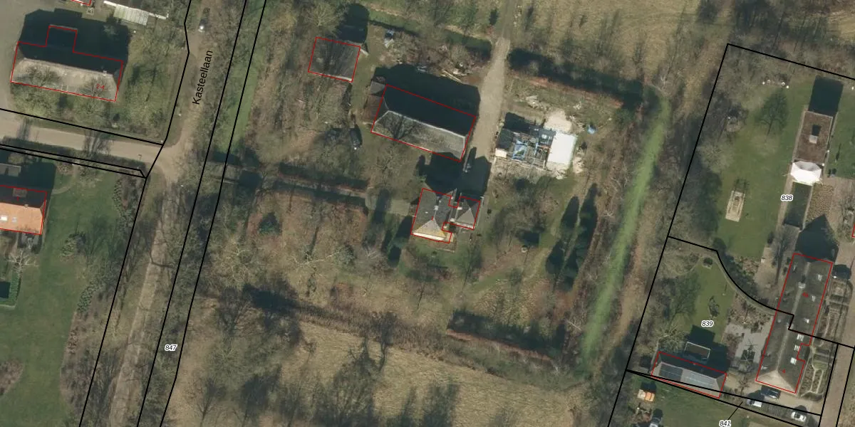 Het perceel waarop Kasteellaan 1 staat heeft een oppervlakte van 11,2 ha. Dit is een zeer groot perceel. De perceeloppervlakte wordt geregistreerd door het Kadaster. Gedetailleerde informatie over de maten van dit perceel kunt u vinden in het rapport Kadastrale kaart met maatvoering van Kasteellaan 1.