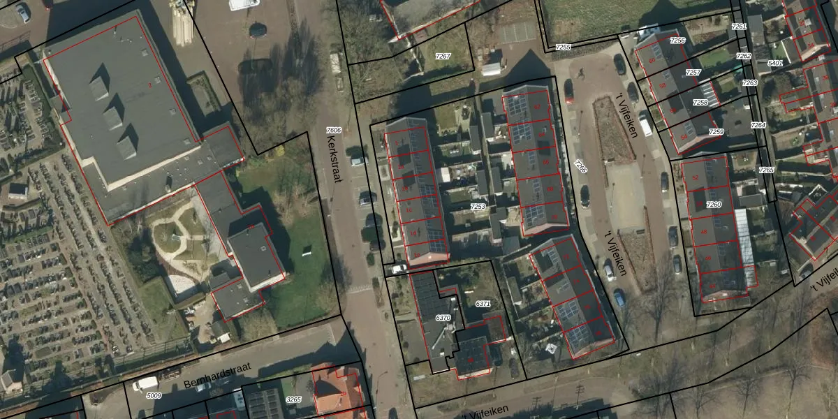 Het perceel waarop het adres ligt is HEE02-A-7253. De afkorting 'HEE02' staat voor kadastrale gemeente Heesch. Het perceel is 2459 m² groot. Dat is kleiner dan de gemiddelde perceeloppervlakte in Heesch, dat op 2872,44 m² ligt. Het grootste perceel in de kadastrale gemeente is 50,1 ha. Het kleinste perceel heeft een oppervlakte van 0 m². Op het perceel zijn 15 adressen aanwezig. In de Basisregistratie Kadaster (BRK) werden de grenzen van het perceel geregistreerd op 03-07-2018.