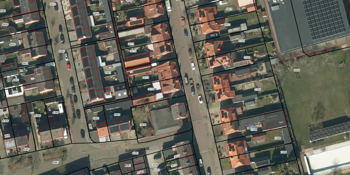 Gebruik de zoekbalk of klik op een perceel voor informatie over de adressen binnen dit perceel.