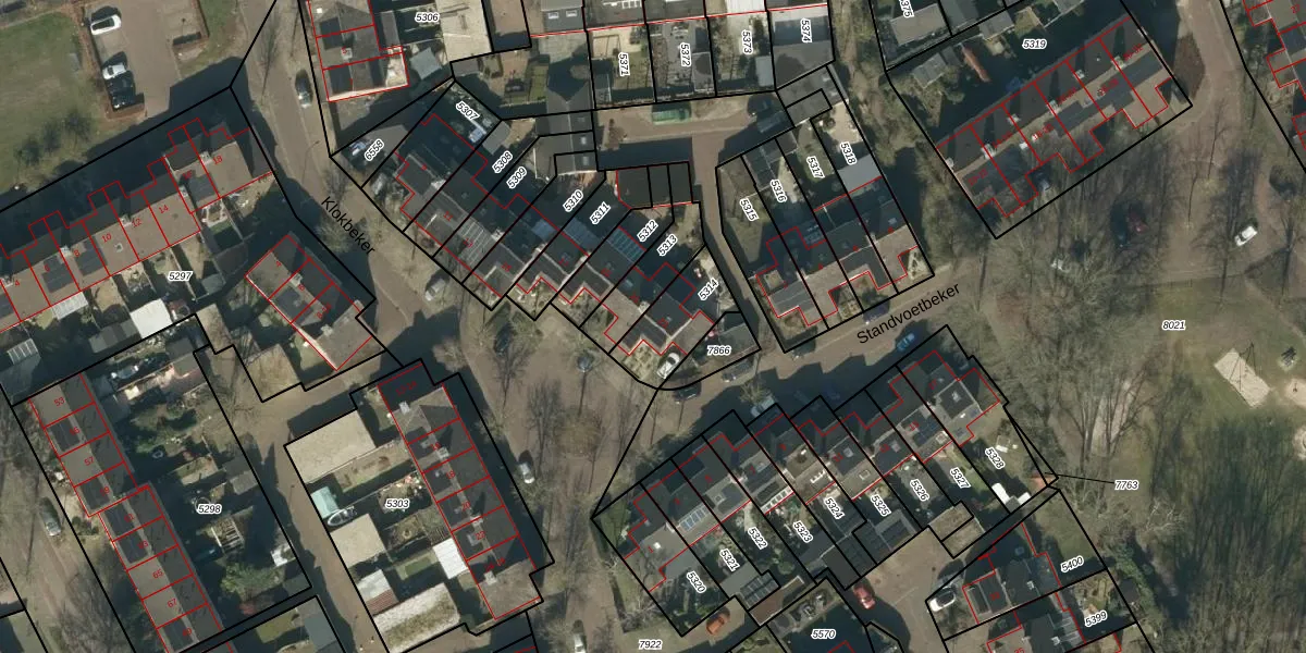 Het perceel waarop Klokbeker 23 staat heeft een oppervlakte van 195 m². Dit is een middelgroot perceel. De perceeloppervlakte wordt geregistreerd door het Kadaster. Gedetailleerde informatie over de maten van dit perceel kunt u vinden in het rapport Kadastrale kaart met maatvoering van Klokbeker 23.