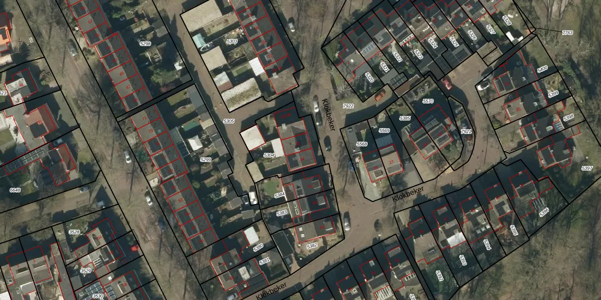 Het perceel waarop Klokbeker 32 staat heeft een oppervlakte van 485 m². Dit is een groot perceel. De perceeloppervlakte wordt geregistreerd door het Kadaster. Gedetailleerde informatie over de maten van dit perceel kunt u vinden in het rapport Kadastrale kaart met maatvoering van Klokbeker 32.