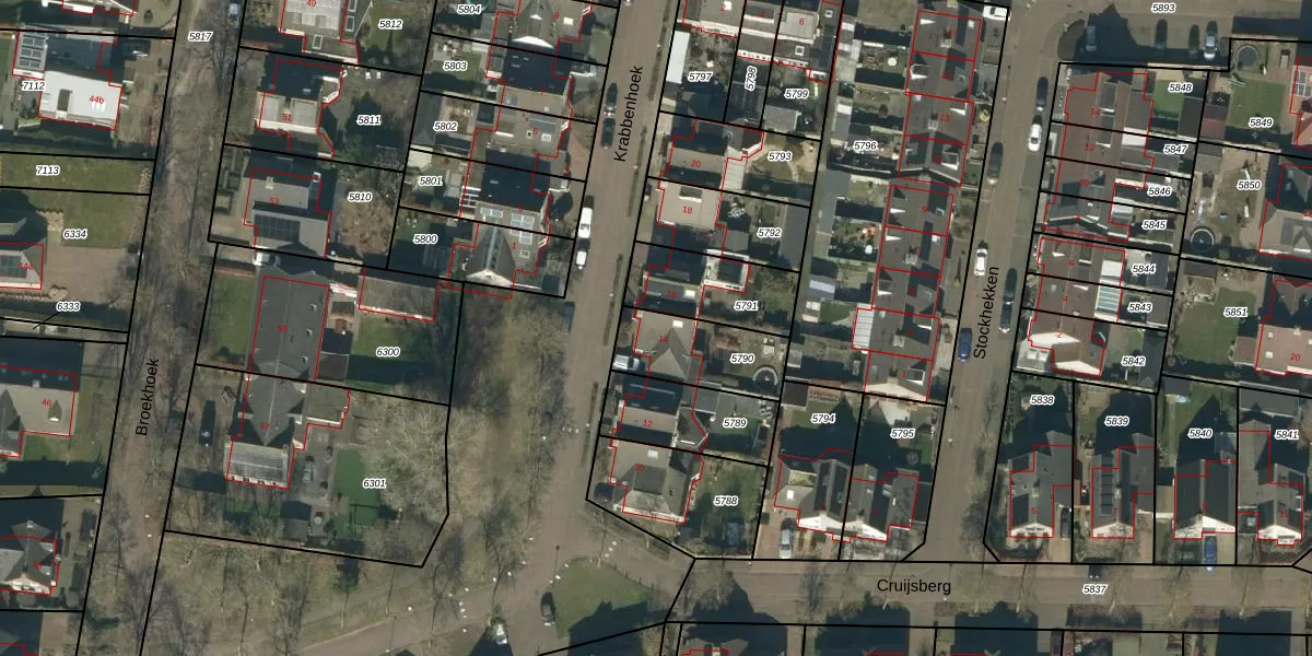 Gebruik de zoekbalk of klik op een perceel voor informatie over de adressen binnen dit perceel.