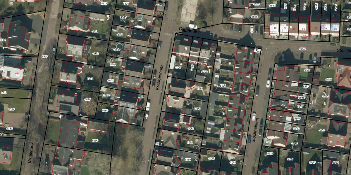 Krabbenhoek 20 is gelegen op kadastraal perceel HEE02A5793. Deze kadastrale aanduiding is uniek en wordt gebruikt door het Kadaster om eigendomsrechten en andere zakelijke rechten vast te leggen. Het perceel maakt onderdeel uit van de kadastrale gemeente Heesch.