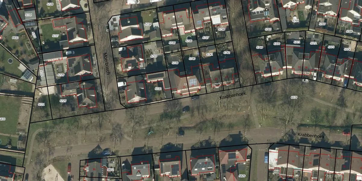 Het perceel waarop Krabbenhoek 21 staat heeft een oppervlakte van 243 m². Dit is een middelgroot perceel. De perceeloppervlakte wordt geregistreerd door het Kadaster. Gedetailleerde informatie over de maten van dit perceel kunt u vinden in het rapport Kadastrale kaart met maatvoering van Krabbenhoek 21.