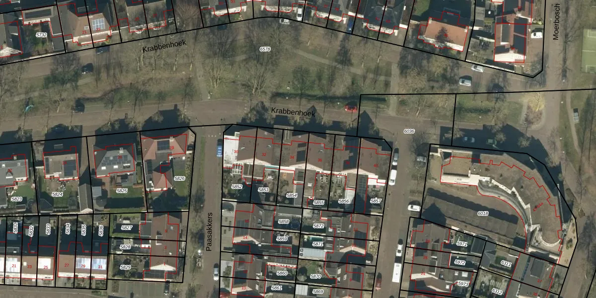 Gebruik de zoekbalk of klik op een perceel voor informatie over de adressen binnen dit perceel.
