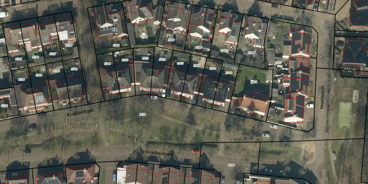 Krabbenhoek 39 is gelegen op kadastraal perceel HEE02A5774. Deze kadastrale aanduiding is uniek en wordt gebruikt door het Kadaster om eigendomsrechten en andere zakelijke rechten vast te leggen. Het perceel maakt onderdeel uit van de kadastrale gemeente Heesch.