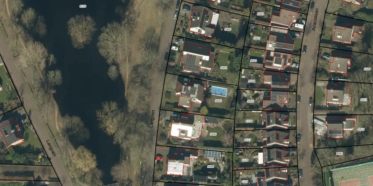 Het perceel waarop Langven 15 staat heeft een oppervlakte van 755 m². Dit is een groot perceel. De perceeloppervlakte wordt geregistreerd door het Kadaster. Gedetailleerde informatie over de maten van dit perceel kunt u vinden in het rapport Kadastrale kaart met maatvoering van Langven 15.