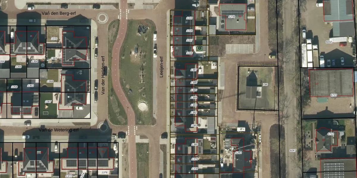 Leeijen-erf 13 is gelegen op kadastraal perceel HEE02F1385. Deze kadastrale aanduiding is uniek en wordt gebruikt door het Kadaster om eigendomsrechten en andere zakelijke rechten vast te leggen. Het perceel maakt onderdeel uit van de kadastrale gemeente Heesch.