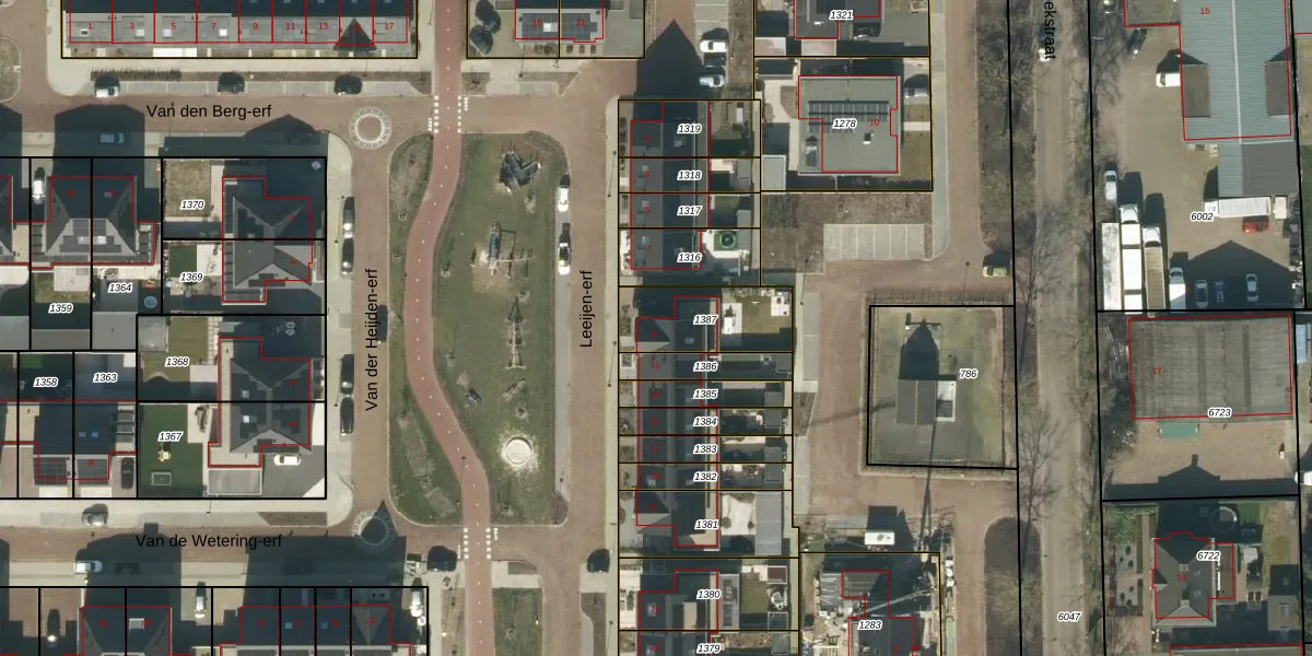Leeijen-erf 9 is gelegen op kadastraal perceel HEE02F1387. Deze kadastrale aanduiding is uniek en wordt gebruikt door het Kadaster om eigendomsrechten en andere zakelijke rechten vast te leggen. Het perceel maakt onderdeel uit van de kadastrale gemeente Heesch.