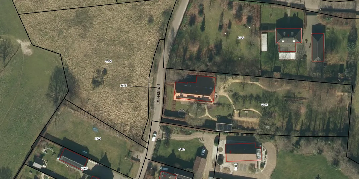 Het perceel waarop Leliestraat 7 staat heeft een oppervlakte van 3275 m². Dit is een zeer groot perceel. De perceeloppervlakte wordt geregistreerd door het Kadaster. Gedetailleerde informatie over de maten van dit perceel kunt u vinden in het rapport Kadastrale kaart met maatvoering van Leliestraat 7.