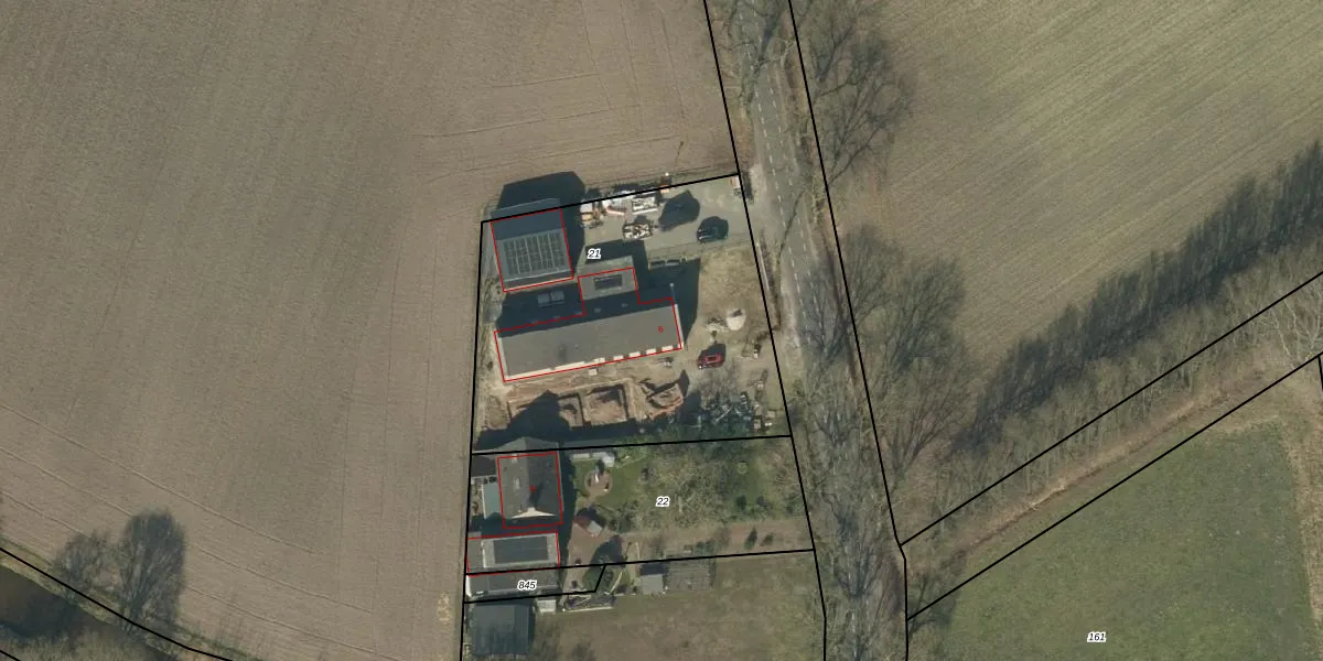 Het perceel waarop het adres ligt is HEE02-F-21. De afkorting 'HEE02' staat voor kadastrale gemeente Heesch. Het perceel is kleiner dan gemiddeld in Heesch. Het perceel is 1700 m² groot, terwijl het gemiddelde ligt op 2877,15 m². Het grootste perceel in de kadastrale gemeente is 50,1 ha. Het kleinste perceel heeft een oppervlakte van 0 m². Er zijn geen andere adressen aanwezig op het perceel. De laatste wijziging in het de Basisregistratie Kadaster (BRK) was op 08-11-2006.