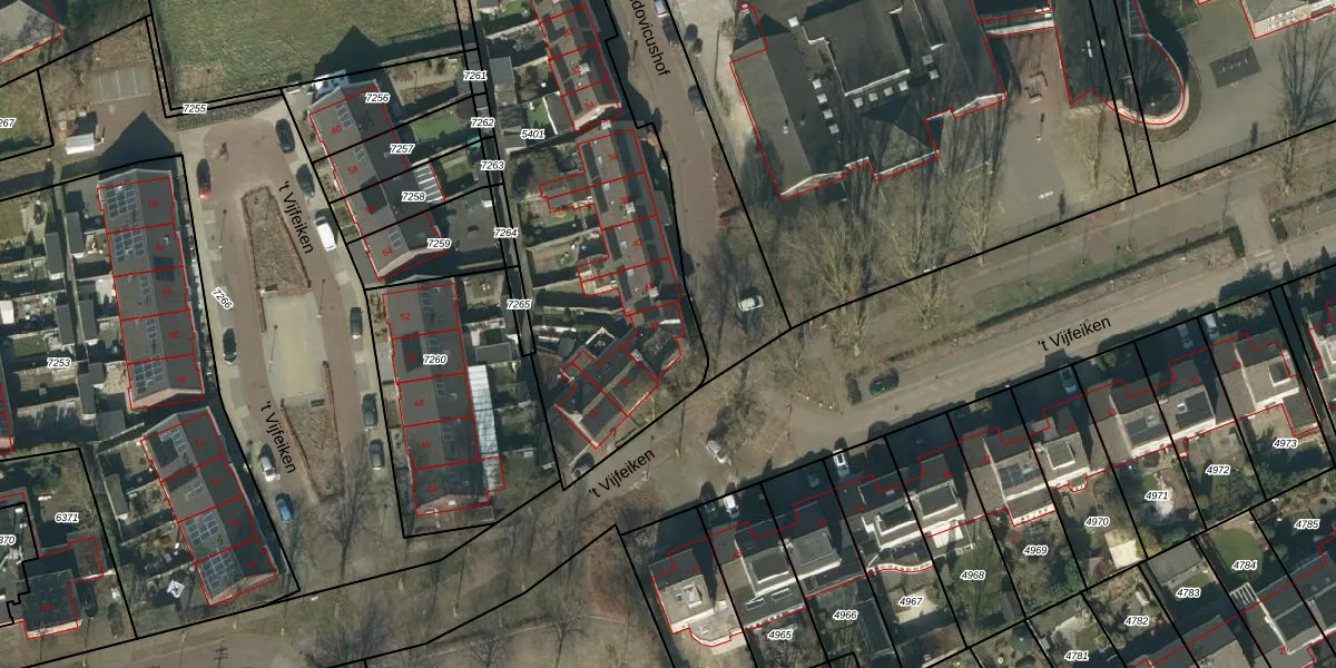 Het perceel waarop Ludovicushof 44 staat heeft een oppervlakte van 2398 m². Dit is een zeer groot perceel. De perceeloppervlakte wordt geregistreerd door het Kadaster. Gedetailleerde informatie over de maten van dit perceel kunt u vinden in het rapport Kadastrale kaart met maatvoering van Ludovicushof 44.